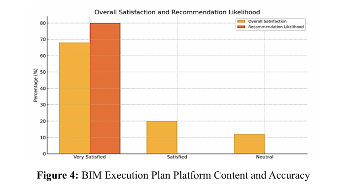 The platform's overall satisfaction was assessed using a rating scale, as well as the probability of recommending it to others in the construction industry.
