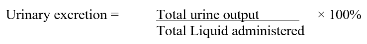 1. The urinary excretion independent of the animal weight was calculated as the ratio of total urinary output by total liquid admin- istered using Formula-1: