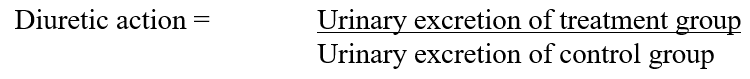 3. The diuretic activity: The diuretic action of the extracts was compared to that of the standard drug in the test group using Formula 3: