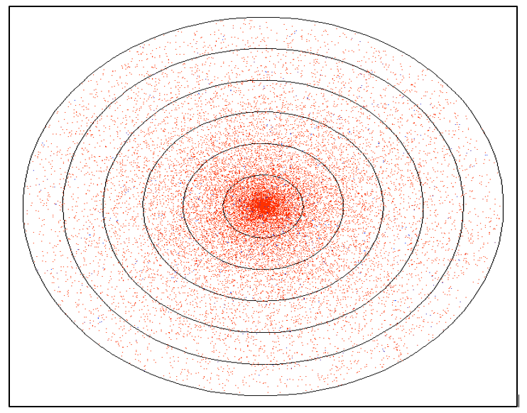 Figure 1: The Particle Display of 60Co Point Source in Sphere Model Air Space without Concrete Land