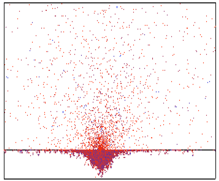 Figure 2: The Particle Display of 60Co Point Source in Rectangle Model Air Space with Concrete Land