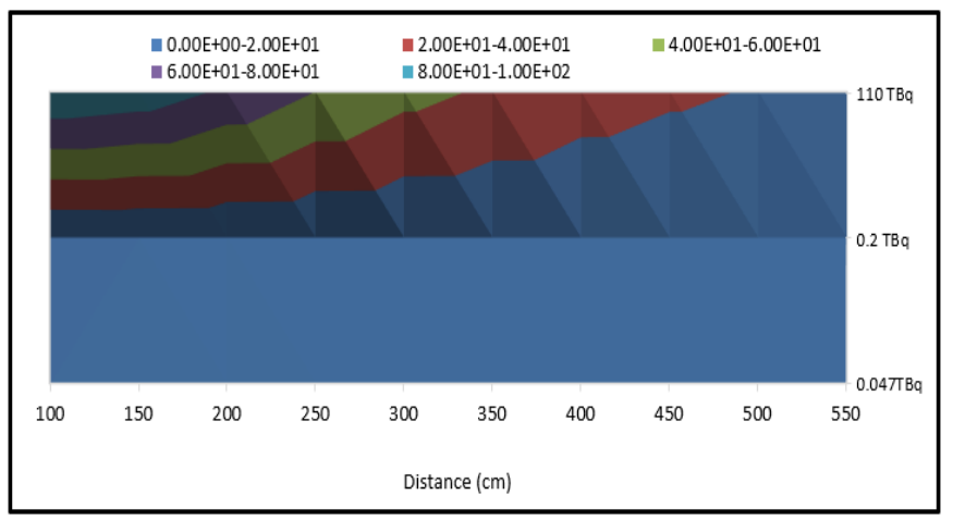 Figure 6: Dose Rate (mSv/h) due to 137Cs Point Source (0.047-110 TBq) at Different Distances