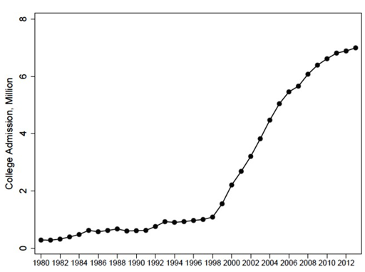 Figure 3: Chinese College Admissions from 1980 to 2013