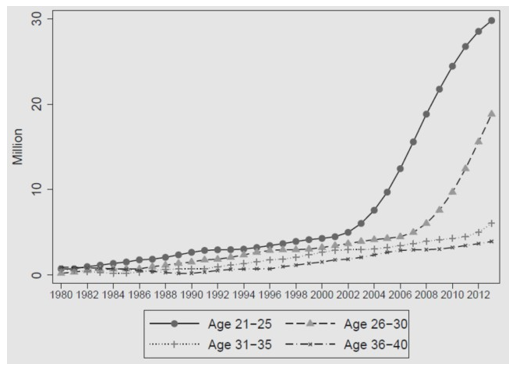 Figure 4: Illustrates the Distribution of College Graduates Across Various Age Groups in China From 1980 to 2013