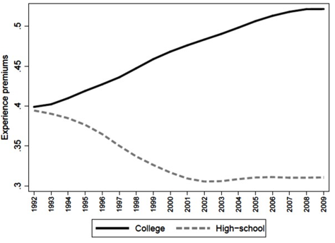 Figure 5: Illustrates the Experience Premiums of College Graduates Compared to High-School Graduates in Urban China