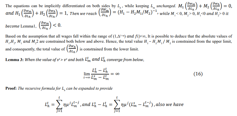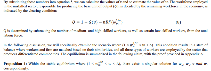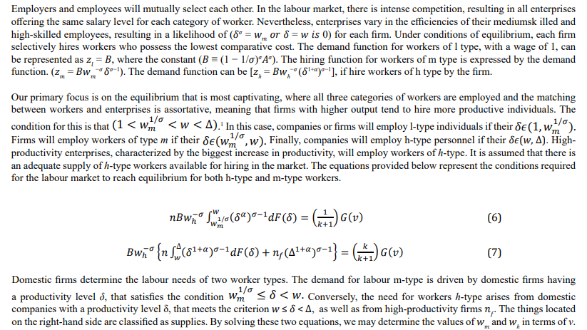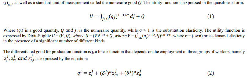 Where Low - skilled is l,medium-skilled is m and high-skilled is h. Linear production function does not only simplify computations but also illustrates that workers of different types are not equilibrium interchangeably, Regardless of whether they are perfect alternatives in the production function. The core findings of our research remain consistent even when alternative production functions, like the CES, are employed.