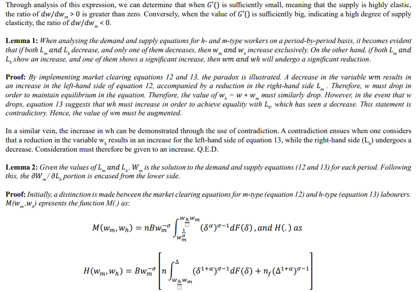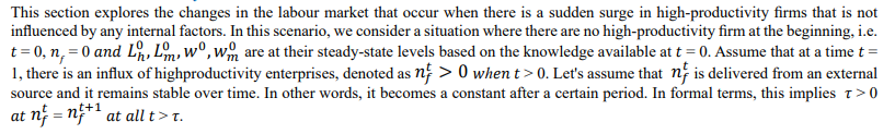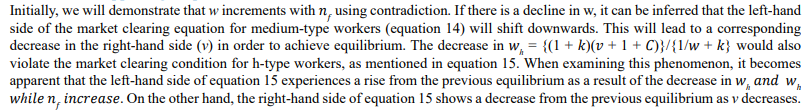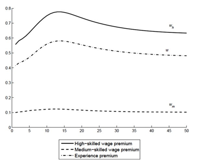 The simpler assumption is corroborated by empirical evidence presented in the previous section, indicating that the rate of return to experience for workers with limited skills has remained consistent since 2002. This suggests that skilled persons with prior experience might be viewed as direct substitutes for unskilled workers without experience. Moreover, our results remain analytically unaffected by changing the assumption. Little abilities experienced worker, for example, can be thought of as 1 + a (where a > 0 is an external constant) novice worker. The low-skilled experienced workers' salary is directly correlated with the low-skilled workers' salary without experience, represented as (1 + aw) . It is expected that all of our theoretical findings should align analytically.