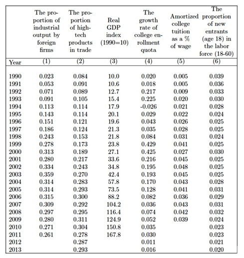 This section presents empirical data on the development in China of human capital and wages. We next examine the potential presence of demand shocks that are linked to fluctuations in the labour market, specifically the growth of foreign direct investment (FDI), which has led to an increasing need for highly skilled workers. Lastly, we will now demonstrate comparable discoveries from other rapidly developing economies like Taiwan, Korea, and Thailand.