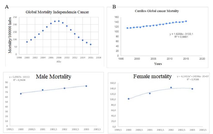 In the case of Cerrillos, the study cannot directly associate deaths with pollutant levels because despite the reduction in pollutant lev- els over the years, there is an increase in the incidence and mor- tality rate from cancer and cardiovascular diseases. , which would indicate that new variables should be included in the study that explain the increase in the mortality rate due to these diseases.