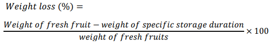 Procedure: One fruit in each treatment was marked for weight loss analysis [19]. The percent weight loss was calculated using the following formula:
