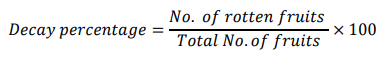 At the end of the research, in each treatment, the rotten fruits were counted, and the decay percentage was calculated by using the following formula [12].
