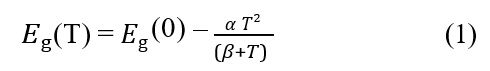 Where Eg(0) is the energy of the gap at T=0 K, α is an empirical parameter related to the joint density of states and β an effective tem- perature. By fitting the experimental results with