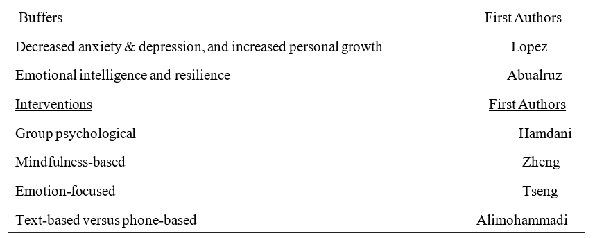 Table 4: Buffers and Interventions for Emotional Distress (and First Authors)