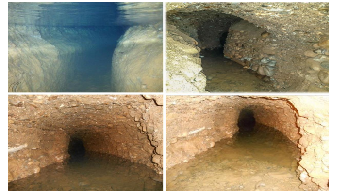 Figure 4: Photographic Documentation of Water-Filled and Partially Submerged Passageways Within the Ravne Tunnel Complex. These Channels, Often Lined with River Pebble Walls and Carved Through Conglomerate Material, Exhibit Consistently High Water Clarity and Stability. Water Levels Remain Steady Throughout the Year, Likely Due to a Self-Regulating Hydrological Mechanism Influenced by the Pyramid-Shaped Terrain Above. Source: Pyramids Around the World & Lost Pyramids of Bosnia, Archaeological Park: Bosnian Pyramid of the Sun, Sarajevo, 2014, pp. 269–270. Published in https://piramidasunca.ba/images/banners/ANALIZA_ SLIKE_VODE_BION_09_13.PDF
