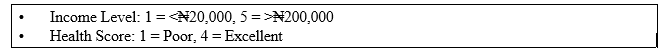 When analyzed at the community level, the data revealed only modest differences in average education, income, and health scores across the four sites. Uyo recorded the highest average educational attainment (mean score: 2.01), but did not achieve the highest health score. Okobo, despite being a rural locality, recorded the highest average income level (2.75) and comparable health scores to more urbanized areas. These findings emphasize that individual socio- economic advantages do not automatically translate into better health at the community level. This aligns with, who showed that poor community conditions can undermine the benefits of personal attributes like education and income [12,13]. In this study, Uyo’s comparatively lower health score, despite high education levels, likely reflects intra-urban disparities in access, affordability, and infrastructure, patterns also observed in for urban Ghana [19]. This study advances knowledge by empirically confirming that place matters: where individuals live can determine whether or not their personal resources are converted into health gains.