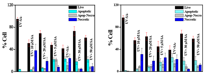Result: After series of experiments, we have observed that even at 10 µM concentration, SA is effective against UV induced cellular death.