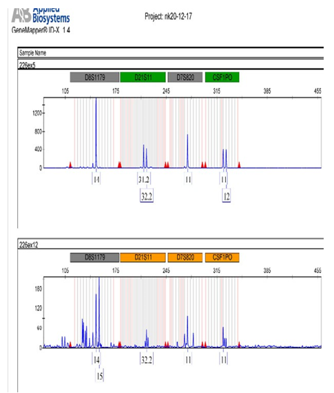 Sometimes, it is challenging for the forensic scientists to extract DNA from samples mixed with the soil and road concrete because such samples contain contaminants and PCR inhibitors and there is variation observed in STR profiles and yield of DNA. The sample containing higher soil contaminants produces multiple peaks on low size markers less than 200 base pairs and no peaks on big size markers8. Exhibits having higher content of soil and degradation show allelic dropout and incomplete or partial profiles. Lastly, it can be concluded that some of the sample generated complete profiles, remaining were partial or incomplete because of the presence of soil in the sample. To obtain this, the sample should contain minimum number of contaminants and inhibitors and if the sample is damply preserved, there is reduction in chances of amplification of DNA.
