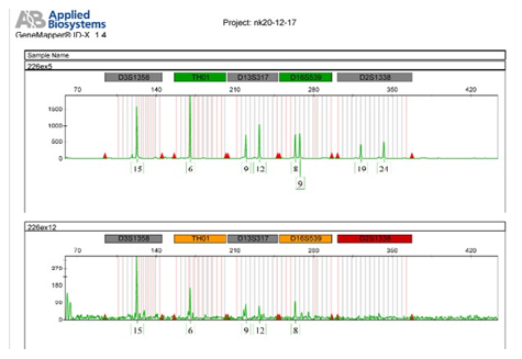 Graph 2: Showing the comparative profile of four markers of blue dye (FAM) lower sample is degraded.