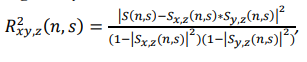 where: (n,s ) represents the squared partial wavelet coherence between x and y at time n and scale s , adjusting for the influence of Z S(n,s ) is the smoothed cross wavelet spectrum of X and Y. are the smoothed cross wavelet spectra of x with z and y with z respectively.