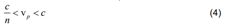 where again c is speed of light in vacuum, and n is the refractive index of the medium. If the medium is water, the condition is again, 0.75c < Vp< c , since n ≈ 1.33 for water at 20 0C.