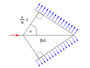 The mathematical description of Cherenkov radiation involves several key concepts from electromagnetism, optics, and particle physics. Here’s a breakdown of the relevant equations and principles: