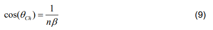 This equation shows how the angle at which Cherenkov radiation is emitted depends on both the particle's speed and the refractive index of the medium.