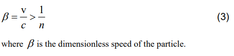 1. Speed in Different Mediums: The speed of light is constant at approximately 299,792299,792299,792 km/s in a vacuum. However, light travels slower in any medium, such as water or glass, where its speed is given by vp = c / n (with n being the refractive index). When a charged particle exceeds this phase velocity in the medium, it emits Cherenkov radiation.