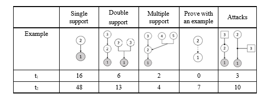 Analysis of support relations (see Table 4) revealed both quantitative and qualitative shifts in argumentative structure. Simple support relations increased from 16 at tâ? to 48 at tâ??, while more complex configurations (double and multiple supports) also rose. Particularly noteworthy was the emergence of examples as a support type: none were present at tâ?ÂÂ, yet seven were identified at tâ??.