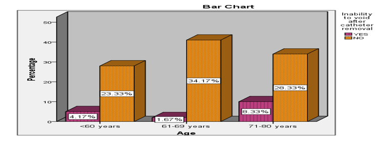 Figure 1: Showing Preoperative Factors Affecting Inability to Void Immediately After Catheter Removal (N=120)/Age