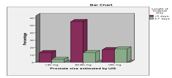 Figure 4: Showing preoperativeFactors Affecting the Length of Postoperative Hospital Stay (n=120)/Prostate Size