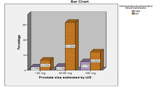 Figure 5: Showing Preoperative Factors Affecting the Intra/Postoperative Rate of Blood Transfusion (N=120)/Prostate Size