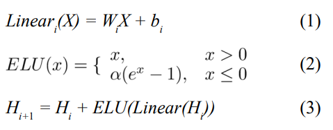 where W and b are learnable parameters. The ELU hyperparameter α controls the value at which the activation function saturates for negative inputs. The highway module connects the input of each layer to the end, solving the gradient vanishing problem caused by overly deep networks.