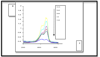 FT-IR spectroscopy was used to identify functional groups. The observed peak at 3432 cm-1 corresponds to the O-H groups of water molecules as the active surface of Nps absorbs water. The observed peaks at 1632 cm-1, 1403 cm-1 are attributed to the carbonyl group , C-O bending group , respectively .The observed peaks at 570 cm-1 and 474 cm-1 are correspond to metal- oxygen bonds (M-O), as shown in Fig (1).