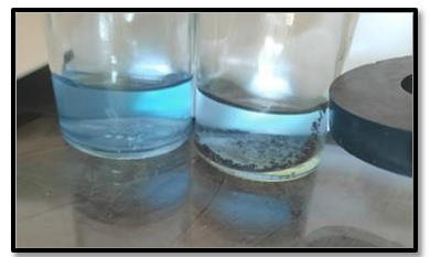The magnetic separation of the nano biocomposite by an external magnetic field is shown in Fig (6). In addition to effective dye adsorption, the suitability of the magnetic properties of this nanomaterial indicates its application as a nano surface absorbent