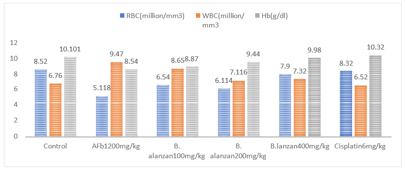 Figure 3: Effects of B. Alanzan on Haematological Parameter (RBC, WBC and Hb) of Control and (Afb1) Induced HCC in Rat
