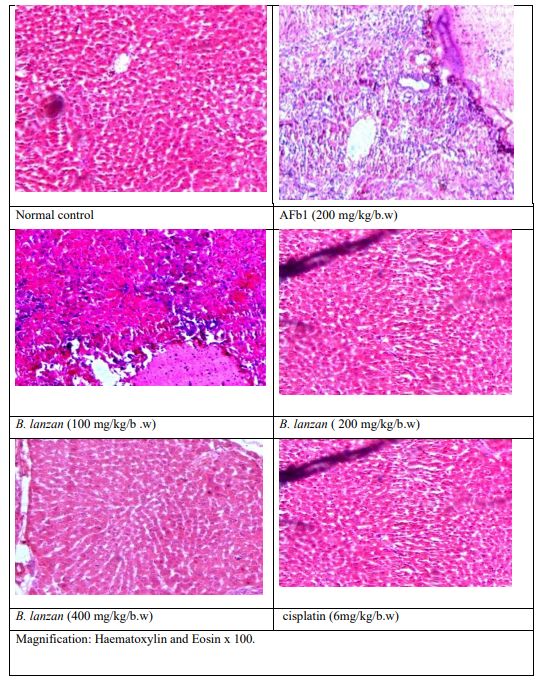 Figure 4: Histopathological Analysis of B. lanzan Against AFb1 Induced HCC