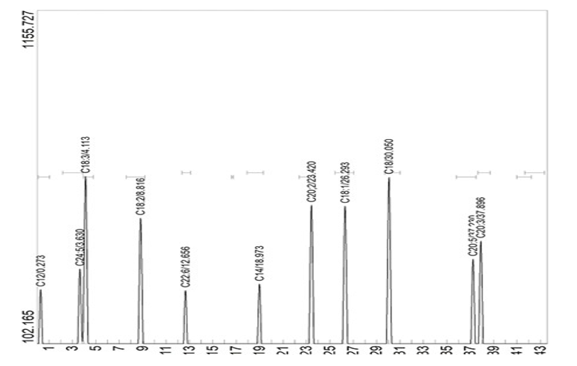 Figure 7: Showing the GC Chromatogram of Fatty Acids in Palm Fruit Emulsion