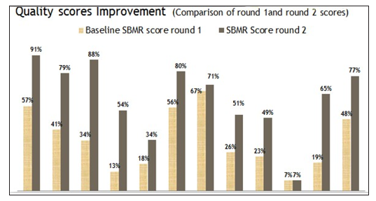 The results shows that quality of services was not satisfactory before intervention, besides this accessibility, other supply related issues, enabling environment, knowledge about Family planning and cultivate demand for services were compromised. Baseline assessment using SBM-R tool showed unexpectedly poor scores as low as 7%, which not safe for service delivery. After taking interventions minimum improvement was observed up to 34% and maximum 95% which is incredible improvement in standards. This improvement was assessed almost after 6 months time period of Baseline SBMR.