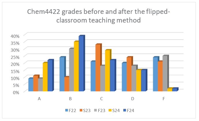 Table 6. Grades of Chem4422, Organic Chemistry II, in Spring 2024 and Fall 2024 Semesters