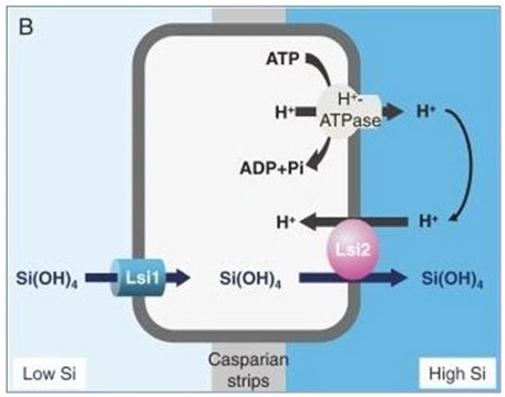 Figure 1. Transport of silicon via Lsi1 and Lsi2 transporters