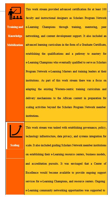 The first phase of the e-Learning Initiative had four key program work streams that carried out activities over a period of 18 months as shown in Figure 1 below.