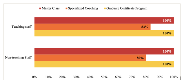 Figure 2 below illustrates the levels to which teaching and non- teaching participants felt the initiative’s activities (Master Class, Specialized Coaching, and Graduate Certificate Program) met their expectations
