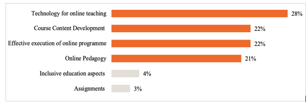Other findings had implications on increased knowledge of information technology (IT) support provision; exposure to and help with diverse and interactive features that would augment instruction for example graphics, videos, Flipgrids, Padlets, Quizlets, Kahoots; what might be required to prepare, plan for, and organize courses and course syllabi in more proactive ways; effectively using online learning platforms for instance facilitating online discussions, conducting quizzes, uploading materials on Canvas and Blackboard; appropriately arranging learning materials by scaffolding learning processes and procedures; and choosing and using learning accommodation tools for students with disabilities. As illustrated in Figure 3 below, there is a fairly even spread between four aspects of the Master Class activity that teaching staff found most useful. These aspects undoubtedly all had an effect on the successes achieved by the program as participants gained the competencies mentioned above.