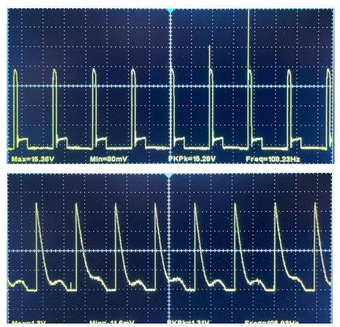 While rotor based switching systems are often seen as the most effective way to elicit an energy influx into a Lead acid battery, in part due to the coupling between the magnetic fields and the inter- twined coil windings and the trigger coil, a solid state alternative has long been sought after for their smaller size and quieter oper- ation, despite the loss of the mechanical energy output that rotor based switching systems offer, and because a solid state trigger can easily be set to a frequency suited to the specific battery and con- figuration. However, while they are also capable of a CoP > 1, so far, they have not resulted in the same performance as when using a rotor with a trigger coil, and this is possibly due to the particular waveform created by the interaction between the trigger coil and the switching transistor.