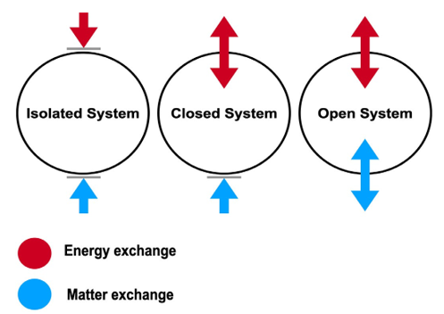 Figure 6: Thermodynamic systems with different ‘allowable’ exchanges [11]