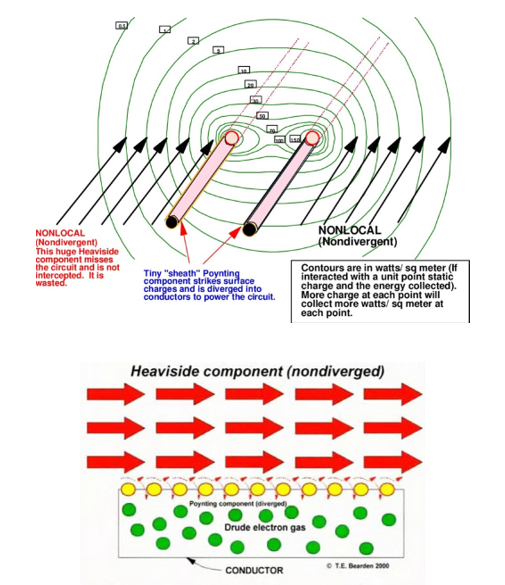 Figure 7: The non-divergent Heaviside energy component of which normally only the Poynting component (captured energy) directly interacts with a transmission line [30]