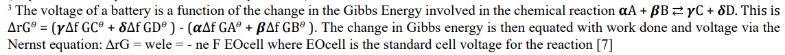A methodology has been devised to test this proposal4 using the known molar masses of active agents within the battery, coupled to knowledge of the electrochemical and thermodynamic processes that occur during charging. Battery ‘state of health’ measurements and calculations can then be performed to see if a ‘chemical deficit’, the loss of active thermodynamic agents resulting from IPC, can account for the measured energy gains.