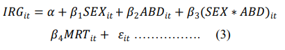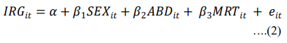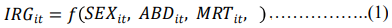 The IRG is the internal revenue generation, SEX is the security expenditure, ABD denotes arm banditry, and MRT represents mineral rent. The is a stochastic error term, while Subscript t stands for years and i stands for countries.
