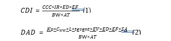 Where the concentration of the metal is Cw (mg/L), the oral ingestion rate of water (IR) measured in L/day, the exposure time (ET) in hours per event, the annual exposure frequency (EF) measured in days/year, the exposure duration (ED) in years, the skin surface area (SA) measured in cm², the skin permeability coefficient (Kp) in cm/hr, dermal permeability coefficient (kp) in cm/hr, the conversion factor (L) been unitless, the bodyweight (BW) in kg/person, event frequency (EV) in events/day, event duration (tevent) in hour/event and the average time (AT) in days.