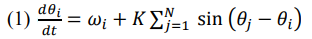 is the natural frequency, and K is the coupling strength [5].